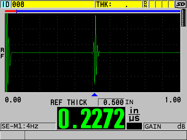 This option allows you to use low frequency single element transducers (as low as 0.5 MHz) to measure thick or sound attenuating materials such as rubber, fiberglass, castings, and composites.